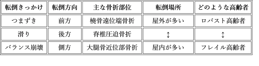 代表的な転倒パターンと骨折部位 まとめ