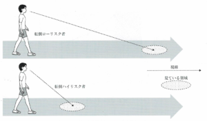 ・転倒ローリスク者は遠くを見て歩く。