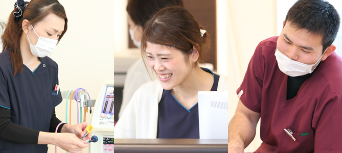 院長による月1回の勉強会や、スタッフ同士の勉強会、スタッフのモチベーションを高める取り組みとして表彰制度など、常に切磋琢磨し合いながら成長できる環境を整えているため、技術を磨くのにピッタリの職場です。また、医療現場での仕事が初めての方や、新卒の方、経験が浅い方でも、研修をしっかりと行うため、安心して働くことができます。わからないことは先輩スタッフに何度でも質問してください。
